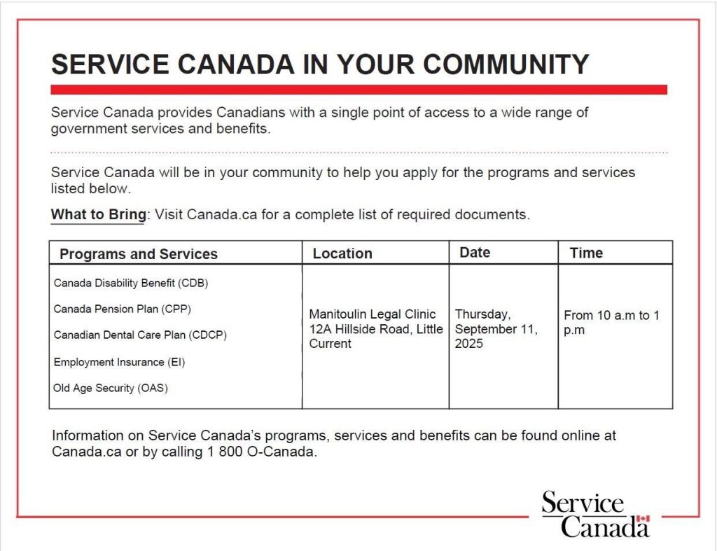 A representative will be at the Manitoulin Legal Clinic on Thursday September 11, 2025 from 10:00 AM to 1:00 PM.
